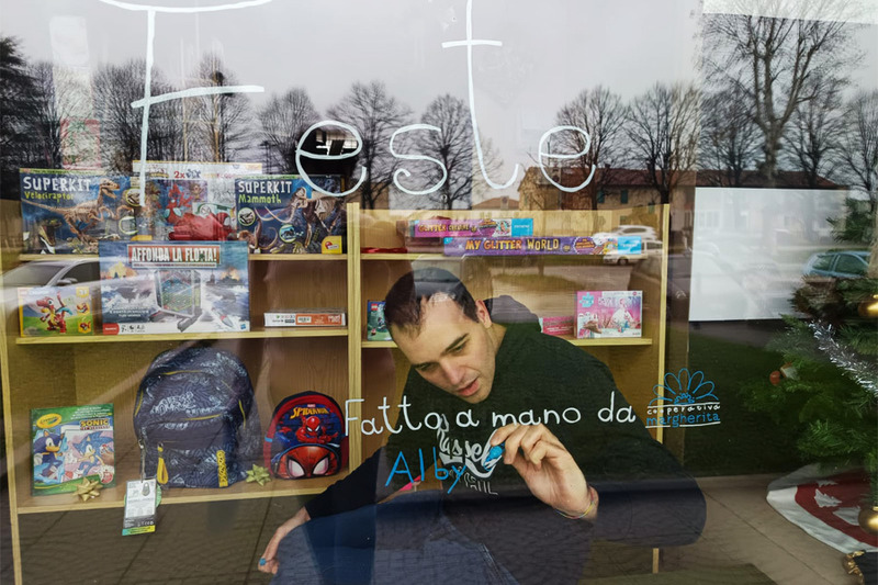 I ragazzi della Cooperativa Margherita decorano una ventina di vetrine dei negozi