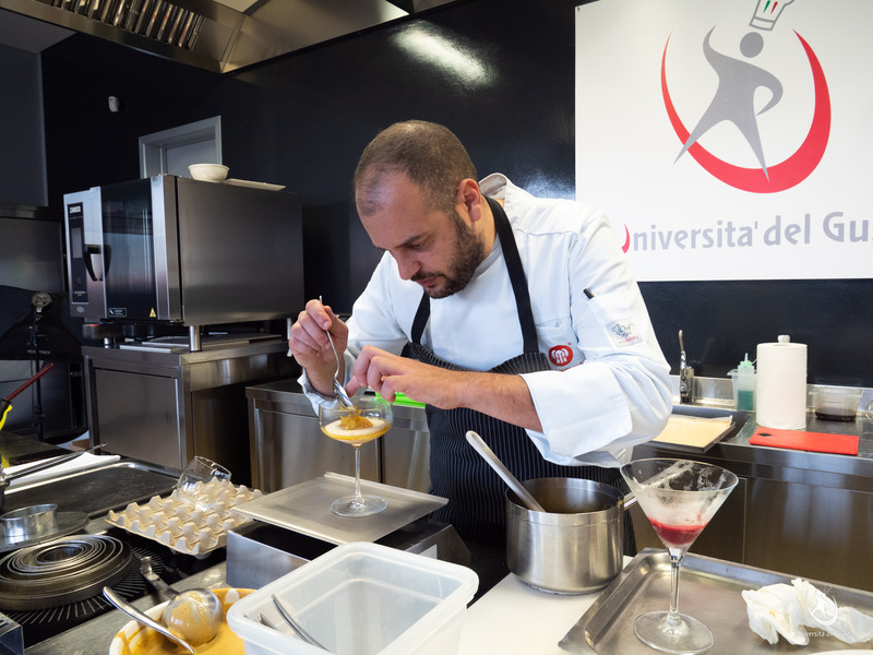 Lo chef Andrea Valentinetti durante un corso all'Università del Gusto